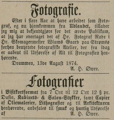 Han var sønn av overtollbetjent Henrik Øvre (f. omkr. 1798 i Molde) og Mariane Øvre (f. omkr. 1802 i Danmark). Han kom som 14 år gammel gutt til Ålesund, lærte fotograffaget og begynte egen forretning omkring 1860. I folketellinga 1865 finner vi ham som ugift fotograf, bosatt hos foreldrene i Ålesund. I 1873 flyttet han til Strømsø i Drammen hvor han giftet seg. I folketellinga 1875 er han oppført sammen med kona Grethe Olava Olsen (f. 1839 i Bragernes). De bodde i Rebansbakken.