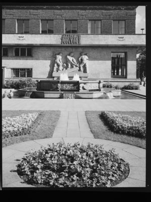 I 1938 vann Anne Grimdalen konkurransen om ein viktig del av utsmykkinga ved Oslo rådhus. Ho arbeidde med desse gjennom okkupasjonsåra, den første tida med atelier i rådhuset. Då flyalarmar, mørkleggjing og ikkje minst tyskarane sine forsøk på å få ho med i Rådet for kunst og kultur vart for mykje for ho, reiste ho heim til Skafså og arbeidde der til krigen var over. «Dyrefontenen» var ferdig i 1947. På veggen bak fontene finn vi relieffet «Tømmerfløtere», og på vestveggen ein fem meter høg ryttarstatue av Harald Hardråde. Ho fekk i 1950 Kongens fortenestmedalje i gull for desse skulpturane.