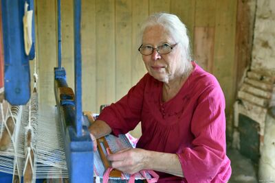 Anne vever på Farveriet på Hørte.
