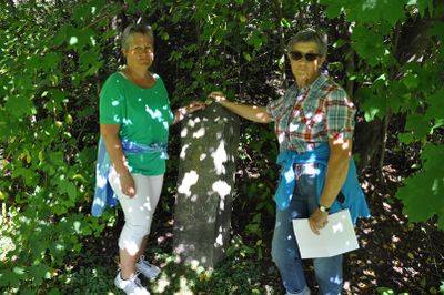 Anne Marie Mæhlum (t.h.) og Magni Bekkelund på grensesteinvandring i 2016.