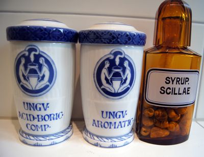 Fire etasjes eldre bygning der lukten av lakris, kamfer og formalin var påtagelig. I kjelleren sto opplagret tønner, fat og glassballonger med all verdens droger og kjemikalier. I 3. etasje foregikk «pilletrilling» og mellom etasjene var en liten vareheis, og var du modig og liten nok kunne du ta heisen på denne måten, selv om det var ulovlig. En av de ansatte ble kalt «Lappa på heisa» fordi hun var fra nordnorge. Øverst i hierarkiet tronet provisor Hans Nagelstad, regnskapsjef Finn Johannsen, salgssjef Reidar Dahl, alle i hvite frakker. Åserud var lagersjef, Leif Jensen sjåfør i sin VW varebil. I tillegg var det kontordamer og visergutter som brakte varer rundt om til apotekene med sine varesykler som hadde reklameskilt på stanga: «AS Apotekernes Fællesindkjøp». Apotekene hadde eksotiske navn som Sfinxen, Nordstjernen, Hygiea, Kronen, Hjorten, St. Georg, Vulkanen, Balder, Løven og ikke minst landets eldste og største apotek på Stortorget, det legendariske Svaneapoteket. | ||