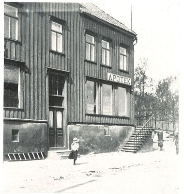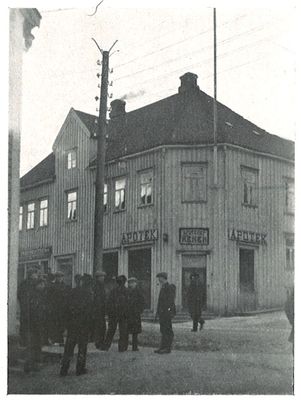 Den gamle apotekbygningen Storgata 92 gikk med under bybrannen i 1969.