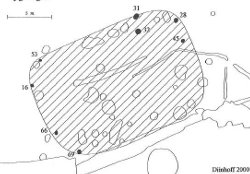 I 1998 blei det funne åtte stolpar på felt I, som kan vere del av ein samanhengande struktur. Sjølv om stolpar ofte blir assosiert med bygningar, er det lite truleg at dette dreier seg om ein bygning. Arealet som er innramma er 18 x 12 meter, og ein huskonstruksjon her ville truleg ha krevd ein sterkare stolpekonstruksjon. Det er derfor meir sannsynleg at det dreier seg om ein dyreinnhegning, der til dømes sau kan ha vore gjerda inn. Denne innhegninga kan stamme frå eldre jernalder (ca. 500 f.Kr. – ca. 570 e.Kr.).