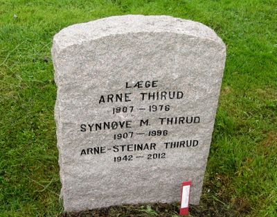 Arne Thirud er gravlagt i familiegrav på Grefsen kirkegård i Oslo. Tittelen Læge er benyttet på gravminnet.