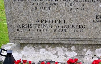 Arnstein Arneberg er gravlagt i familiegrav på Haslum kirkegård i Bærum. Tittelen Arkitekt er benyttet på gravminnet.