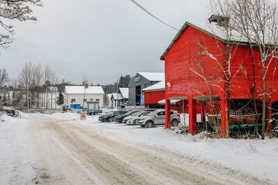 Parti fra Aslak Bøhles vei på Knapstad. Bygningene til høyre tilhører MaxBo, som har overtatt mye av virksomheten til det tidligere høvleriet.
