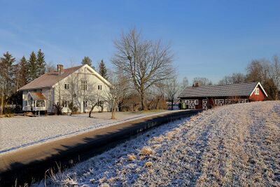 Parti fra Asmyrgata i Gjerdrum. Den hvite bygningen er tidligere Høyenhall skole, som var i drift helt til ny sentralskole sto ferdig på Ask i 1960-årene.