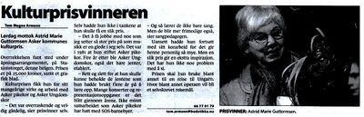Astrid Marie Guttormsen mottok Asker kommunes kulturpris i 2003.