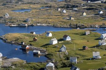 | Flyfoto 1963. Kopper i framgrunnen, Svena bak. Frå venstre: gnr 170 bnr 18, gnr 170 bnr 11 (tranfabrikken), gnr 168 bnr 171, bnr 138, bnr 175. Bak frå venstre: bnr 121, bnr 120, bnr 144. Foto: Widerøes Flyveselskap