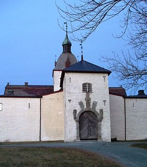 4. Bratberg/Andersen: “Det hadde vært forbudt for adelen å befeste sine gårder siden slutten av 1300-tallet, men kong Hans ga i sin håndfesting av 1483 adelen rett til å bygge faste hus.”