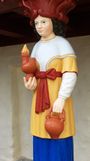 Austråttmadonnaen frå 1220 hadde vorte delt i to under bergingsaksjonen, men vart sammenføydd att i ei restaurering. Dei nye karyatidane i borggarden vart utførte i 195356 av Oscar Lynum, Knut Skinnarland, Kristofer Leirdal og Tone Thiis Schjetne.