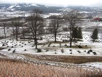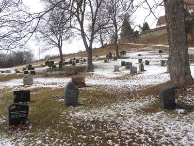 Et av gravfelta i skråningen sør for kirka. Midt på bildet ses Fossens inngjerda gravsted.
