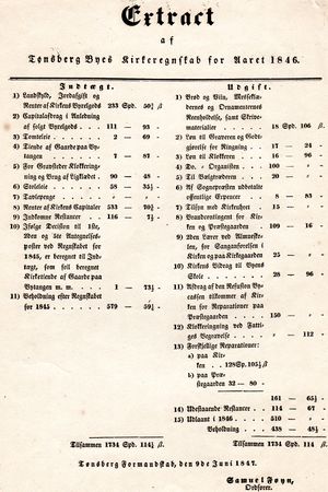 Kirkeregnskap for 1846, Tønsberg
