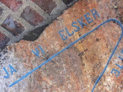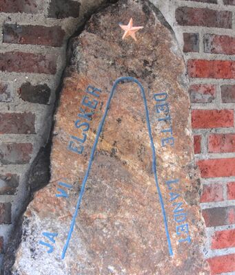 I lutter glede over vedtaket bestilte Frølich en bautastein, med innskriften «Ja, vi elsker dette landet», og plasserte den på «Gulås i Liadalen». Gulås kan være den lille bratte åsen av gul jord som ligger på den andre siden av elva ved gangbroen, og som har barnepark på toppen i dag. Alternativt er Gulås den åsen av gult fjell som steg opp på østsiden av Frølichs hus, der jernbanen og veien nå ligger. Høyt og fritt skal en bauta stå, og Gulås var en ideell plass. Fritt over dalbunnen sto den, godt synlig fra hans hus og kruttverk. Dessuten må alle som ferdes på daværende Ljabruvei, og det var mange, ha sett den.