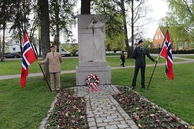 Her har det vært fast tradisjon at Norske Reserveoffiserers Forening avdeling Nedre Romerike og Romerike HV-veteraner har forestått kranspålegging den 8. mai. Lotteforeningen skal også ha deltatt. De har også lagt ned krans på monumentet over Lillestrøms falne. Det kan ha foregått annerledes i en tidlig fase. I 2020 bekranses monumentene 17. mai av speiderrådet, i forlengelsen av tradisjonen med flaggheisingen som speiderne har hatt ansvaret for gjennom en årrekke.