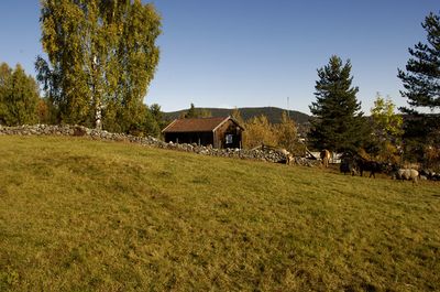 Bergelåven med husdyr foran.