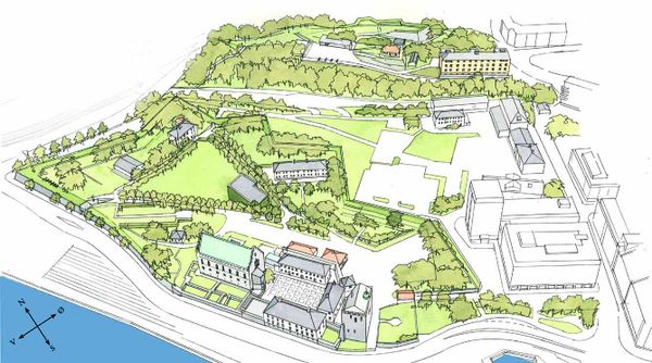 Bergenhus festning består av tre områder: Holmen med kongelige og kirkelige anlegg, Koengen og Sverresborg. På 1600-tallet ble de tre områdene sammenføyet til ett stort militært område.