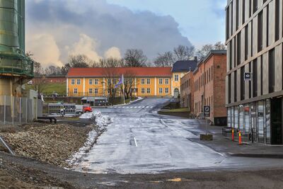 Parti fra Bernt Ankers gate i Moss med Konventionsgården i bakgrunnen.