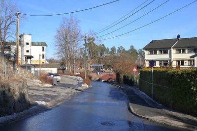 Bestumveien med undergang for Drammenbanen ved Bestum stasjon sett fra Sigurd Iversens vei.