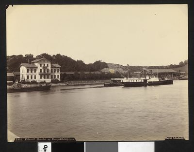 Stasjonsbyen i Eidsvoll med hotellet og dampskipsbrygga i 1880-åra.