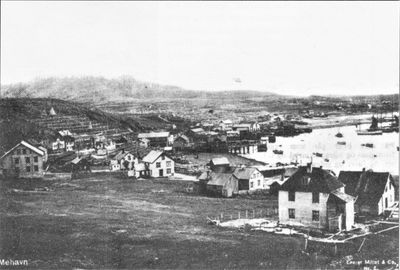 Fiskeværet Mehamn i 1930-åra. Fotografi fra boka Kirkenes-Litsa tur-retur av Kalle Wara (1994).