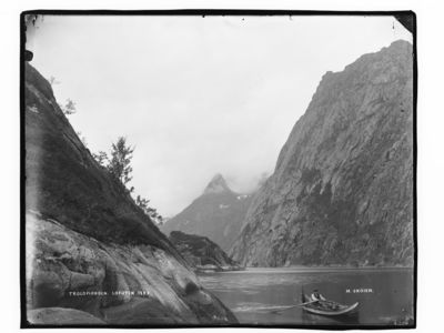 Mann i robåt på Trollfjorden en gang mellom 1880 og 1910.