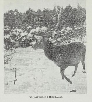 Hjortebukk på jaktmarka i Helgebostad, fotografi fra Det norske næringsliv.