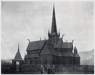 - Bugge, Anders: Lom stavkirke. Utg. Grøndahl, 1933. 6 s. Digital versjon på Nettbiblioteket.