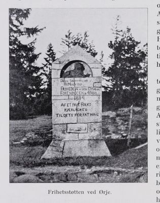 Frihetsstøtta på Ørje, fotografi fra boka boka Aremark og Ømark av Einar Diesen (1909).