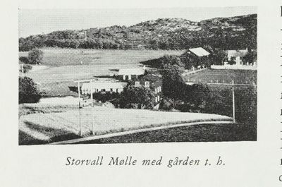 Storvall mølle med garden til høyre. Fotografi fra boka 'Bygdemøllene i Norge av Johannes P. Skansen (1958).