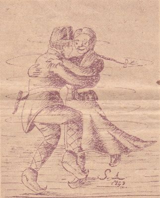 Tegning av sørsamer som danser pols, tegning i Nord-Trøndelag og Nordenfjeldsk Tidendes juleavis av 1928.