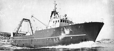 Motortråler «Kågtind», (T-175.S) levert fra Kaarbøs Mek. Verksted til Skjervøy Havfiskeselskap i mars 1970.