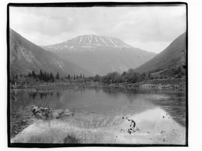På fjellet over Rjukan i 1940-åra, i fjellsida til venstre synes røra ned til Vemork kraftverk.