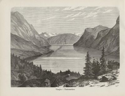 Utsikt over Tinnsjøen, bilde fra boka Nordiska taflor (1870).