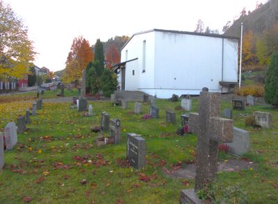 På kirkegården, bak kapellet, står det en klokkestøpul (frittstående tårn i tre, med en kirkeklokke).