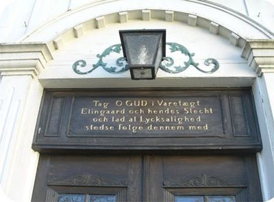 Verset over hoveddøra på Elingård er skrevet av Birgitte Kaas.