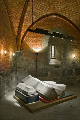 Inne i Bisp Nikolaus' kapell kan man se noen gravsteiner som er funnet i Hallvardskirken