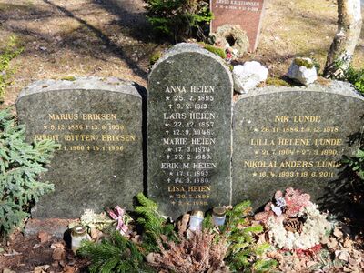 Bitte Eriksen er gravlagt på Vestre gravlund sammen med sin ektemann, sine foreldre og flere andre familiemedlemmer.