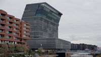 - Fra utløpet av Akerselva, med Munchmuseet («Lambda») i midten og boligområdet Munch brygge i venstre bildekant. Bebyggelsen på Sørengautstikkeren i bakgrunnen.Foto: Premeditated (2019).