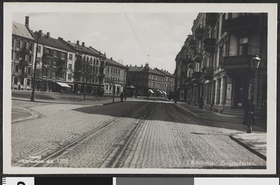 Siste del av Bogstadveien mot Majorstuen løkke. Kirkeveien 62 til venstre.