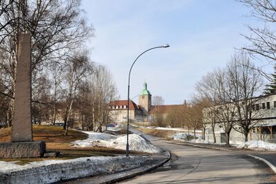 Bredtvetveien. Til venstre i bildet skimtes Bredtveit fengsel, forvarings- og sikringsanstalt.