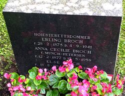 - Gravminne over Olaf Broch (1867–1961) med familie, Vestre gravlund i Oslo.Foto: Stig Rune Pedersen (2015).