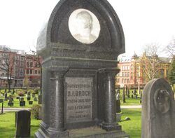 - Gravminne over Ole Jacob Broch (1818–1889), Vår Frelsers gravlund i Oslo.Foto: Stig Rune Pedersen (2014).