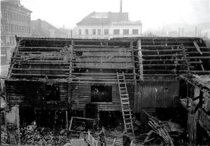 Michelsens gård brant i 1907, og ble revet. Senere ble gateløpet lagt om slik at veien kryssa tomta. Det ble bygd en bygning i funkisstil ved elva, og en større femetasjes bygård tett inntil Brogården.[8] I 1910 bodde Bergliot Kasandra Bratlie med familie og sin mann barbermester Johan J. Bratlie Sande her. På den tiden omtales adressen som Vaaningshus med forretningslokaler, og huset 38 mennesker[9]. Sannsynligvis er dette «den store» bygården som Heiestad beskrev i memoarene sine.
