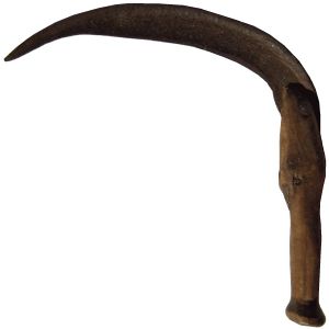 Sigd av bein type (i motsetn. til skjøro/skyru) frå Tustna på Nordmøre. Denne typen sigd vart særleg produsert på Engjan i Valsøyfjord. Foto: Olve Utne