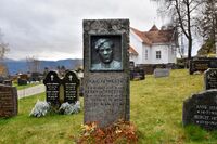 - Gravminne over Torjus Hemmestveit og kona Ragna.Foto: Roy Olsen (2021).