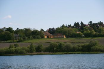 - Østensjø gård, som har gitt navn til bydelen. I forgrunnen sees Østensjøvannet.Foto: Kjetil Ree (2008).