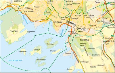 Bydelen omfatter også enkelte øyer i Oslofjorden: