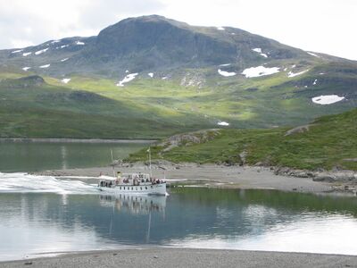 - «Bitihorn» seiler ved Bygdisheim hotell.Foto: Mittet & Co./Nasjonalbiblioteket (1948-1951).