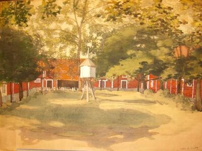Vi gikk ind, og vi traf Carlo Norway, en ung, sympatisk kunstner som nu i mange aar har hat sit virkefelt i London. Carlo Norway kom allerede til London i 1913 sammen med sin mor, der er en datter av vor berømte maler, professor Hans Gude. De hadde i flere aar et stort hus og atelier i London, hvor ogsaa malerinden Betzy Gude utførte mange fine arbeider av hvilke enkelte blev antat og utstillet i det berømte "Royal Academy", en æresbevisninig, som kun kommer faa utlændniger til del. I deres gjestfrie hjem samledes mange norske og ellers kunstnere fra alle verdens hjørner, særlig i krigens første aar, da saa mange krigførende nationers kunstnere var i landflygtighet og strømmet til London for at finde hvile, arbeide og venner. Den øvrige familie reiste tilbake til Norge for nogen aar siden; men Carlo Norway blev igjen og har flittig arbeidet sig fremover i den store verdensby.